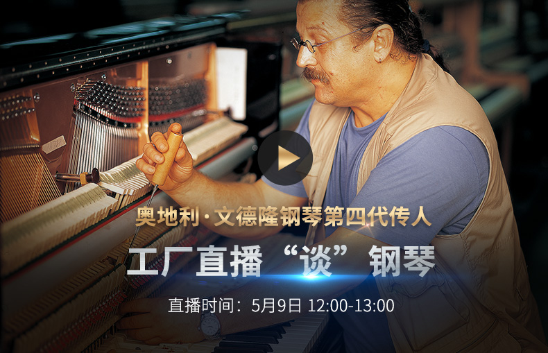 5月9日12:00 - 13:00,海倫鋼琴將在天貓/淘寶直播平臺實時直播《奧地利·文德隆鋼琴第四代傳人工廠直播“談”鋼琴》主題的視頻錄制。奧地利·文德隆鋼琴第四代傳人Peter Veletzky(彼德·維萊茨基)將作為本次主講人為大家介紹文德隆鋼琴品牌和產品,并對一些鋼琴類專業性問題進行直播作答。