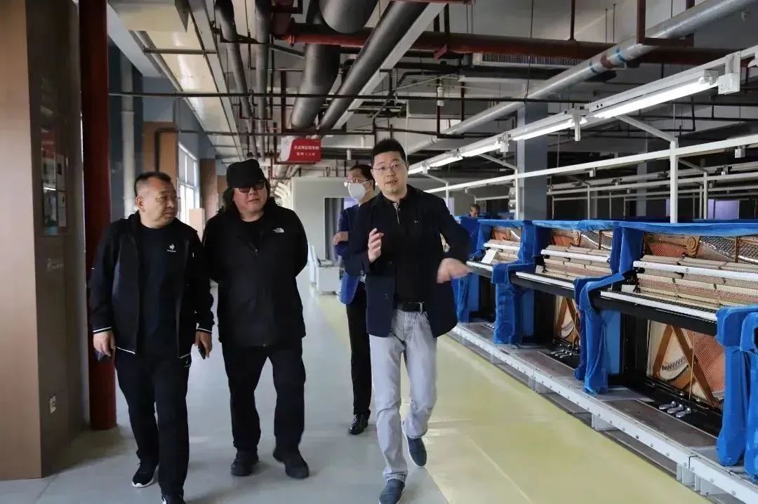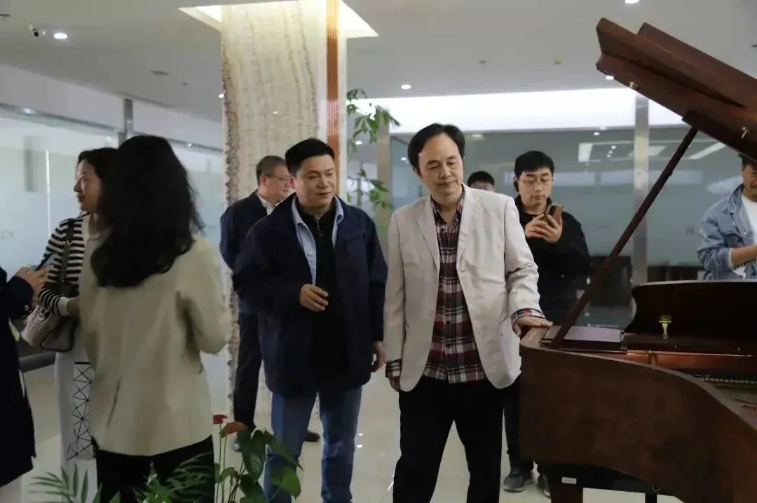 在海倫鋼琴總經理陳朝峰帶隊,海倫藝術教育投資有限公司營運總監張仁博陪同講解下,教育部領導一行參觀了海倫鋼琴生產車間,并駐足欣賞海倫百鳥朝鳳紅木九尺三角琴,對海倫鋼琴的品牌、生產規模、質量管理等方面有了深入的了解。