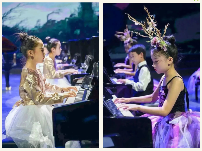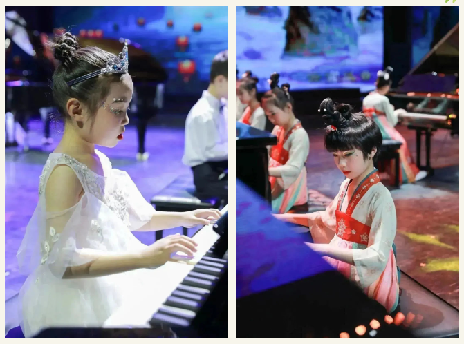 整場音樂會共有五個篇章,分別是:童謠篇、現(xiàn)代流行篇、電影配樂篇、經典名曲篇、歌頌祖國篇,小小鋼琴家們以齊奏,四手聯(lián)彈,彈唱,樂團等不同的演奏形式帶給聽眾一份如癡如醉的美。