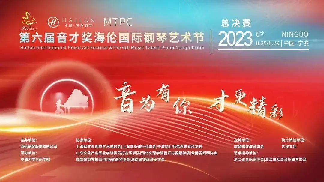 8月25日-27日,2023(第六屆)音才獎(jiǎng)MTPC海倫國際鋼琴藝術(shù)節(jié)•總決賽業(yè)余組相關(guān)賽事、大師課暨頒獎(jiǎng)音樂會(huì)在寧波大學(xué)隆重舉行。來自國內(nèi)多所音樂院校的領(lǐng)導(dǎo)嘉賓、音樂界的名家大師、大賽專家評(píng)委與各位參賽選手、家長相聚一堂,共襄藝術(shù)盛典。