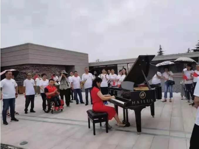 海倫鋼琴奏響紅色歌曲,九三學社“快閃”慶華誕?